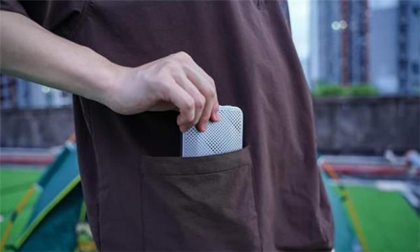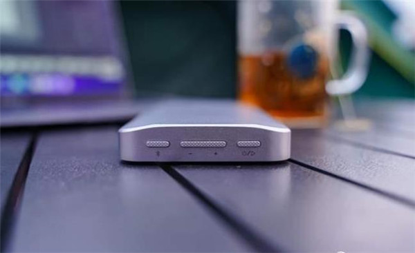 音响的功能按键材质与音响一样,采用交叉纹理设计,手感好且耐磨。音响底部设有2个防滑脚垫,实现稳固放置。DUVOSS音响的厚度约为16.5mm,远薄于市面上便携式音响20mm的厚度,同时也比普通的充电宝要薄上10mm左右。
