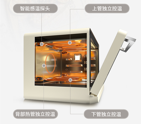 GRAM T30蒸烤炸一体机采用了三支发热管进行的独立控温设计,能够带来30℃~230℃的超广温域,同时内置智能芯片,可以精准匹配食材烹制的温度,让烹制的食材轻松实现外酥里嫩,从而让食物口感层次更加丰富。
