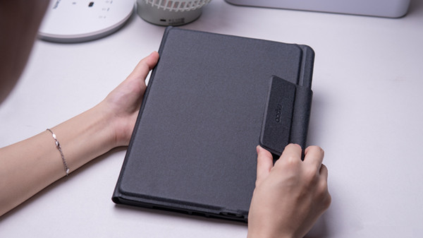 XK300键盘偏硬朗的商务风格,表面采用TPU皮质面料,防滑和耐刮效果非常不错,并且清理起来也十分方便,放在背包中不用担心其他物件刮碰留下划痕,让ipad始终保持如新。