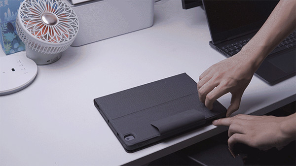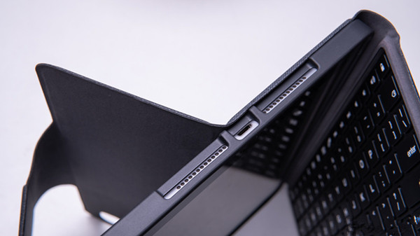 针对Apple Pencil用户,键盘还贴心的配备了内嵌式的Pencil Holder收纳位,随身方便,防止触控笔丢失或摔落。