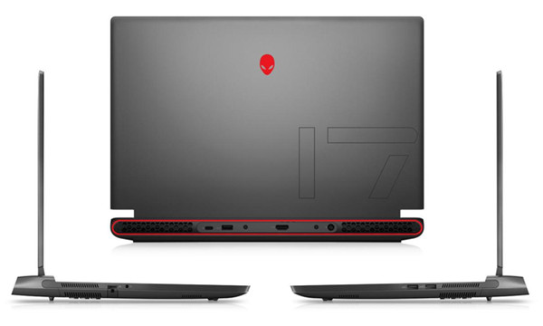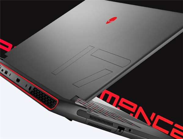 外星人游戏本的“未来主义”的美学设计一直都是它的特色,在行业内也是屈指可数。m17 R5依然延续了未来美学+硬核设计的外型风格,机身厚度约26.7mm,重约3.3kg,再加上AlienFX定制RGB光效,算不上便携,但绝对很酷。机身后侧的环形灯带包裹着蜂巢状散热口,格外引人注目。