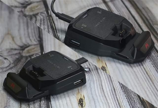 小巧精致的整体设计,仅仅60克的重量,可以轻松随身携带。正面带有一个用于摆放手机的凹槽结构,另外尾部带有一个连接供电线路的C插口。