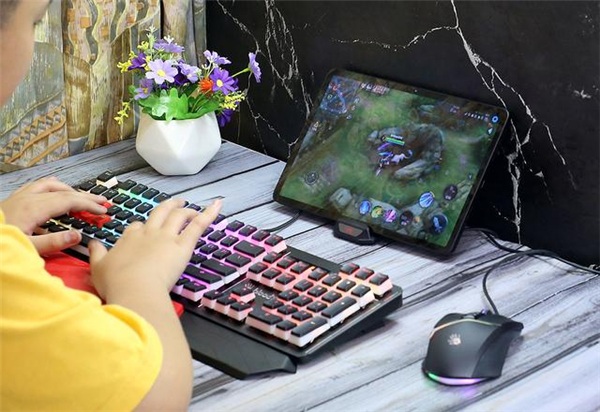 按插口要求插入键盘,鼠标,以及供电线路,北通千机匣就可以工作了,在移动平台上加持键鼠操控,可以提升FPS类游戏手感,自由控制视角,精确瞄准射击