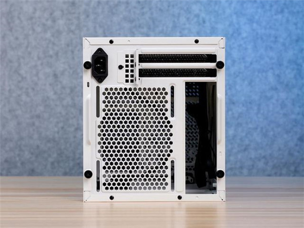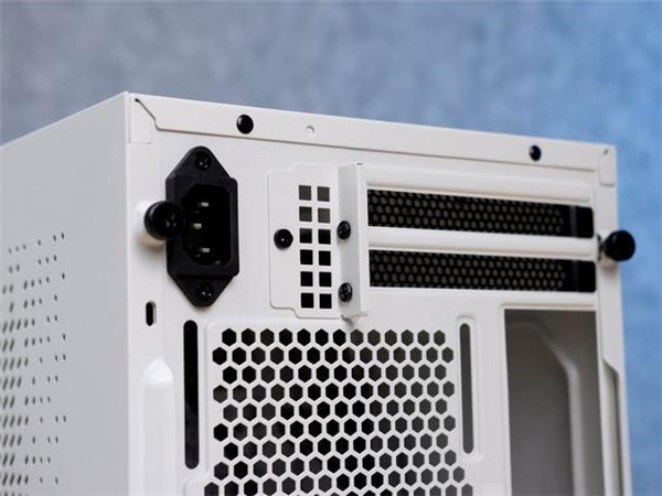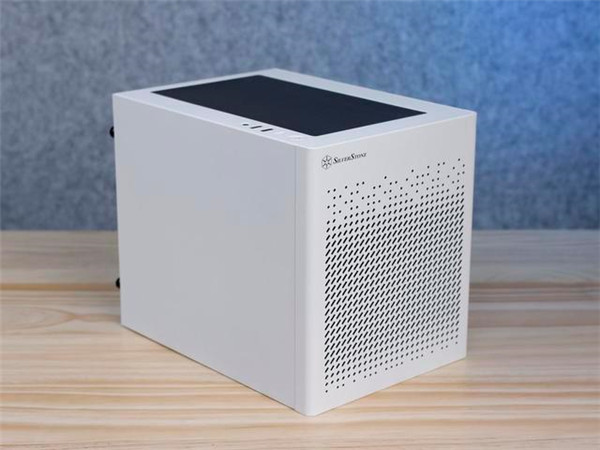 银欣SG16 ITX机箱拥有白色和黑色两种外观版本可选。这款白色机箱拥有大量黑色效果的散热网孔,白色与黑色相间,样子挺耐看。