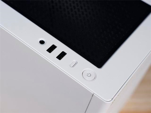 控制区域设计在了机箱顶部。同时机箱顶部还设计了一大块黑色的防尘网。