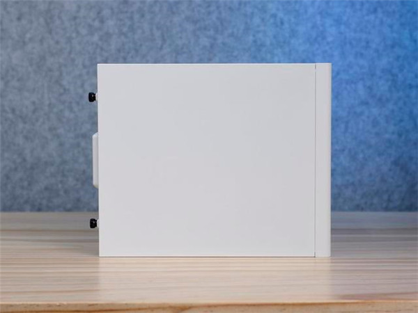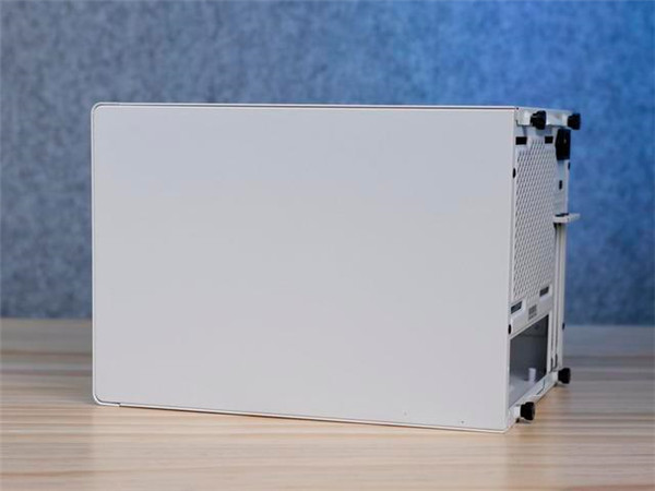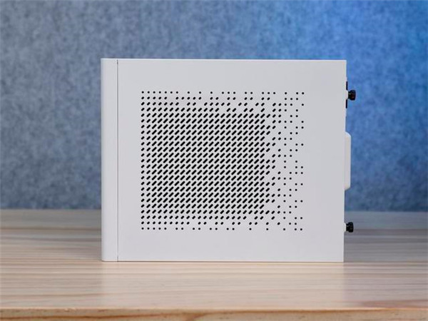 它的左右两侧机箱盖均采用了免工具拆卸设计。左侧机箱盖为一整块钢板。右侧机箱盖设计了大面积的散热网孔。