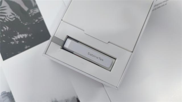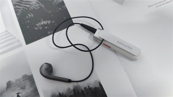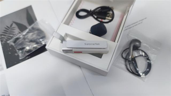 塞宾SmartMike+无线麦克的本体,整体就像一个细长条的口香糖非常的小巧,拿在手上几乎感受不到自身重量的存在,在其他竞品普遍都在36克以上的对比下,14克确实优势格外的明星。随机的配件不算丰富,除了机器本体外就是收纳袋,数据线,防风套,单边耳机,说明书这些了。