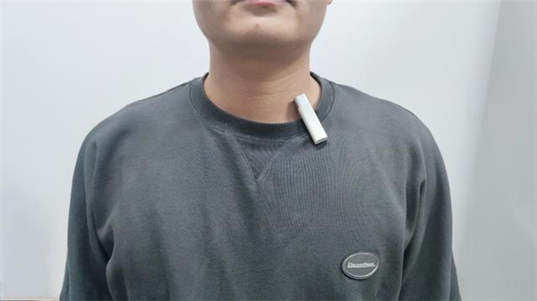 本体设计感还是不错的,我的这个塞宾SmartMike+无线麦克机身是白色,收音孔和耳机孔部分是银色,电源键则是红色细长条,整体采用撞色设计的美感还是格外的抢眼。白色的衣领夹可以轻松的夹在衣领或者衣服的其他位置,牢固性也相当的可靠,由于机身超轻,所以夹在衣领也不会产生下坠破坏个人形象。
