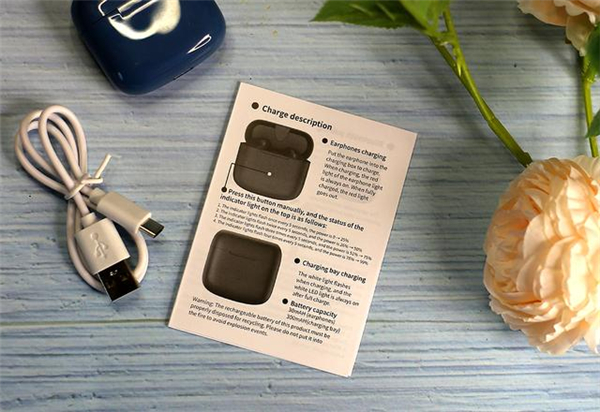 配件方面则是耳机充电仓,正反可插的C插口充电线路以及传统的说明书搭配。除了标配套餐以外,还可以选择带耳机保护套装的版本。