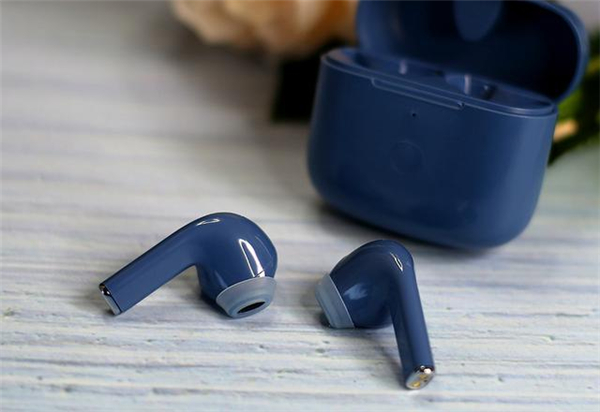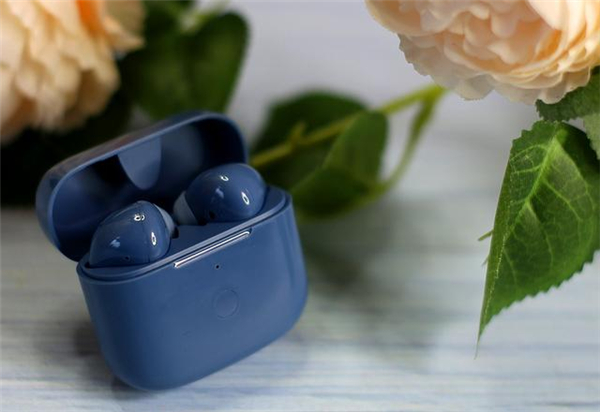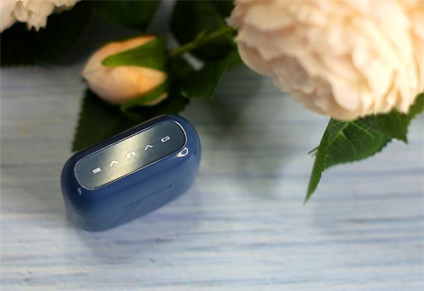 耳机充电仓采用了经典的翻盖式设计,内置霍尔开关,开启后即可进行配对。耳机充电仓的尺寸仅仅50 x 47 x 28mm,重量大约 31g,整个表面和耳机采用同款的高光烤漆设计。耳机放在磁吸凹槽内,整体蓝色色调,不愧是「悦听小蓝鲸」