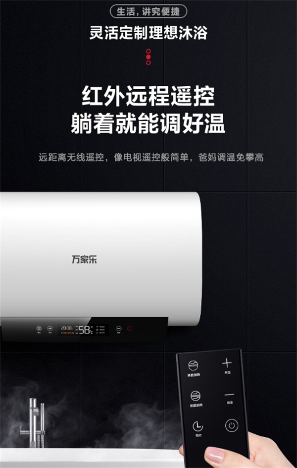 万家乐D60-DB1采用了双胆设计,在使用时可以在单胆和双胆之间随意切换,既可以满足沐浴需求又能加快速度,避免浪费,在选用单胆模式时,加热功能是2000W,加热快速,在选择双胆模式时,加热功率达到3200W,加热迅速,可以满足多点用水的需求。而且这款热水器是扁桶型的外观,机身厚度只有325毫米,大大节省空间,小浴室也不用担心。