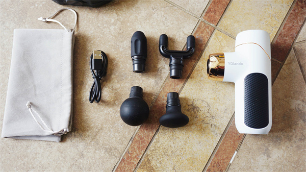 看完主机,来看看按摩头。配备了四种按摩头,分别是平头、子弹头、U型头和圆球头。不同的按摩头功能上也不同。平头适用于肌肉部位的放松、塑形;子弹头适用于冲击深层组织,如关节、手掌和足底等;U型头则是针对颈部、脊椎和跟腱两侧;而圆球头则适用于大肌肉群按摩,比如手臂、臀部和大腿等区域。