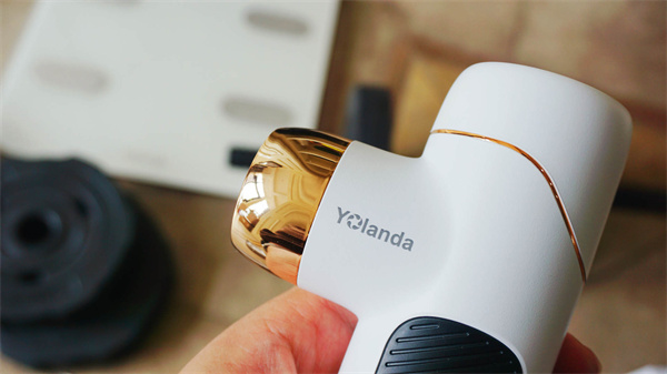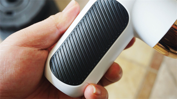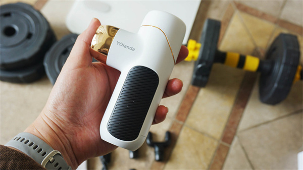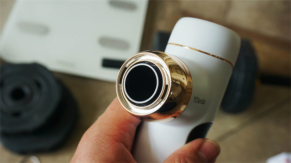 云康宝筋膜枪整体设计还是挺精致的,白色机身,金线点缀,手柄处是黑色硅胶,这个设计对于女生来说应该特别有好感。