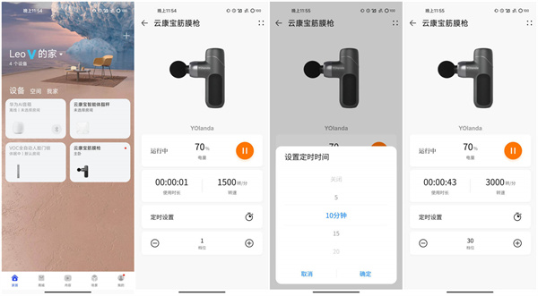 云康宝筋膜枪还是华为智选生态链产品,可以接入华为智慧生活APP。通过APP,可以实现30档档位控制,力度控制更精准。通过APP,还可以看到使用时长,当前转速,以及设定使用时间,和30档档位的选择。