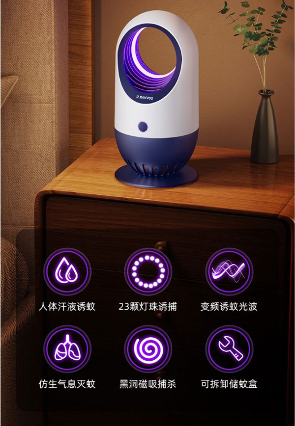 锐舞灭蚊灯采用4项全新技术+双重物理灭蚊,偏蓝紫光强效诱蚊,创新升级模仿汗液气味诱蚊,加强诱蚊效果,仿人体运动体温,全新升级IMAX热能量环,模拟人体运动热感,快速吸引蚊子,采用天然诱蚊因子,模拟人体呼出的CO2.全屋全面诱捕。
