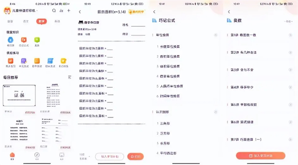 数学方面有练口算,巧计公式和奥数,课后练习也有同步练习,单元测试,期中测试,期末测试以及考点精炼,内容也是非常丰富,知识点也很齐全。