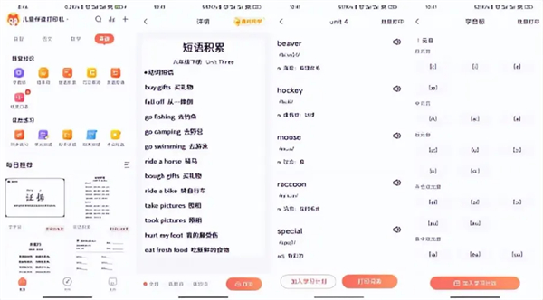 英语方面可以学音标,背单词,段玉洁类,巧记单词,英语背诵,情景口语,课后练习同样有同步练习,单元测试,期中测试,期末测试以及考点精炼。英语除了这些知识点以外,口语也是非常重要的一点,在APP上,像音标,单词等,都有对应的读音,都是非常标准的,这样孩子可以更好的学习。