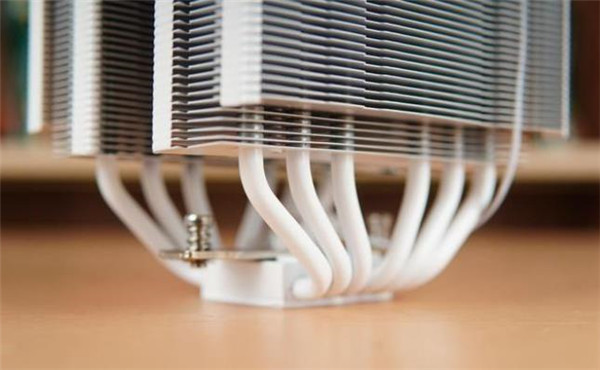散热器的热管与鳍片之间采用了穿FIN工艺,不过鳍片边缘还采用折FIN工艺,鳍片与热管之间的接触紧密,鳍片之间的距离均匀统一,不过在油漆方面的做工还有不少可以提升的地方,希望超频三后续能够加强一下油漆的喷涂工艺。