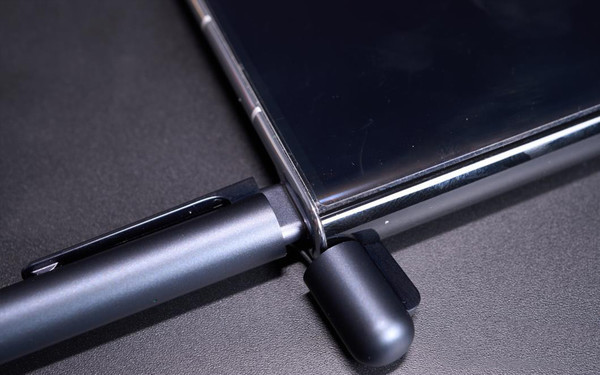 顶部还设计了一个磁吸式的笔帽,打开笔帽是Type-C接口,可以插在手机上进行配对或者充电,原理与体验和之前的Freelace无线耳机类似。可能有不少小伙伴会好奇为什么不支持磁吸式充电?仔细想想和Mate Xs 2似乎并没有什么地方可以吸附,而且吸附之后的安全性可能还不如平板,现在的设计可以说是最优解了。