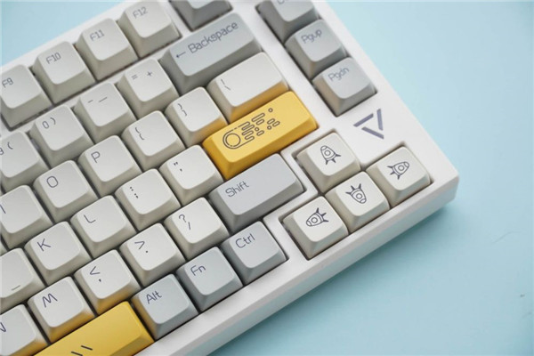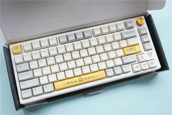 黑爵的包装盒内赠送有功能键帽、拔键/拔轴一体器,在键盘的拆卸和清理上,非常的方便。主要由三种颜色组成,分别为白色灰色和黄色,拼接撞色的非常好看,赏心悦目。