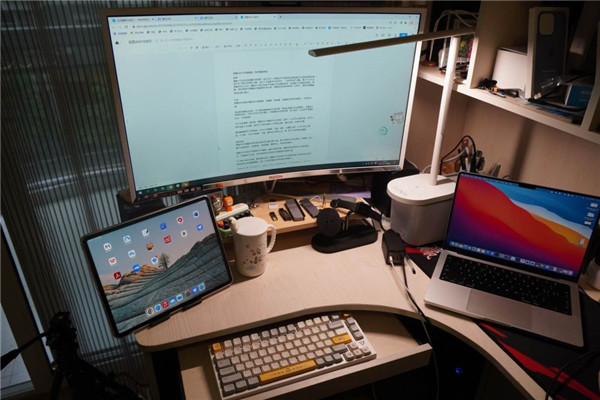 键盘整体采用人体工学设计,使用十分舒适,两档脚撑调节,每个弧度都适合人手敲击弧线指触时更加贴合,我们可以根据自身的使用场景调整到合适的键盘输入使用状态。更符合人体工学数据,自然舒适。