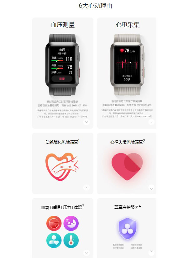 如果长辈患有高血压,那么华为WATCH D则是不错的选择,华为WATCH D支持血压测量与心电采集,通过药品监督管理局二类医疗器械注册,巧妙叠加微型气泵、气囊等结构,将血压测量技术融入手表;采用2.5D立体弧面玻璃表镜,灵动美感跃然腕间,简洁有序的双按钮设计,搭配舱型高硬度铝合金中框,勾勒柔和精致的轮廓。