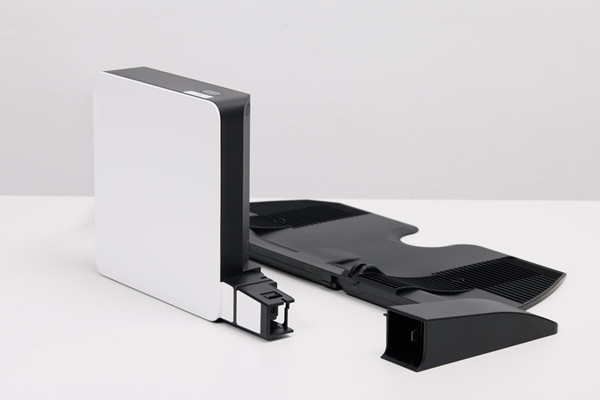 再来看一下细节,烘干主机后方有两根电源线,一根是输出线,接在基座上,用于给基座供电,另一根则输入线,接在电源上,给整个设备供电。据了解,烘干主机的烘干功率为 40W,但额定功率达到了 1000W。