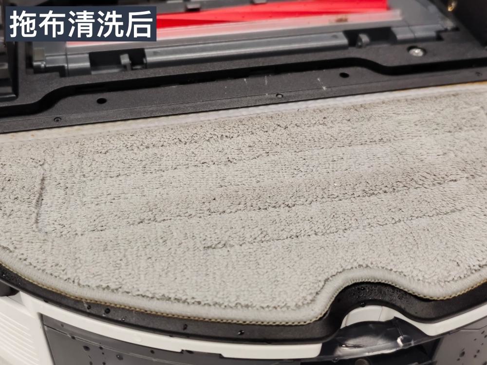 随后回到基站,自动集尘且清洗拖布,过程大概在 5 分钟左右,结束后拖布已经变干净了很多,效果和拆下来手洗差不了多少。
