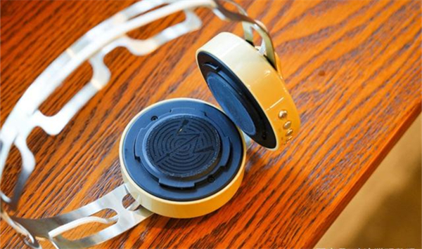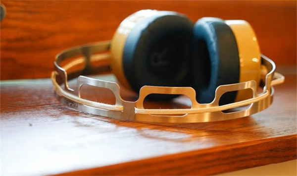 刚拿出来的耳机在没有任何装饰的情况下还是充满想象力的,头梁是由坚固且轻便的记忆金属打造,大面积的镂空设计能保证其耐用性,线材从中间穿过,由浅灰色的尼龙线包裹,美观而又实用。