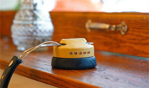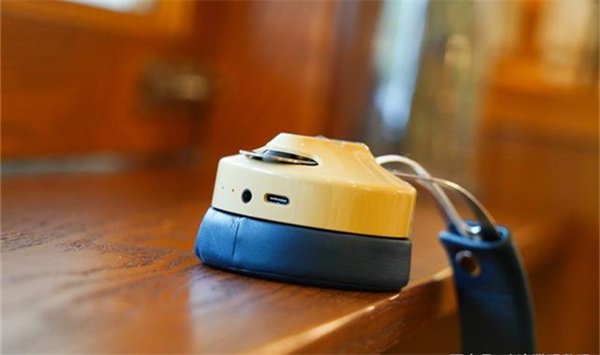 往下便是发音元件,外壳为烤漆亮面设计,再搭配上复古黄的配色,颜值属实有点让人惊艳,另外在中间区域还有长方形的金属装饰条,还设计了触控区域,确实实用。