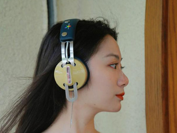 为了适应不同的头型,头梁末端两侧是穿过耳机的,金属弹片滑动结构可以上下滑动到合适的位置,这样让佩戴使用时达到最舒适位置。