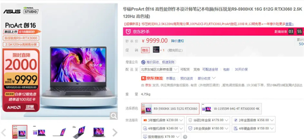 ️产品卖点:618限时价(9999元),标压锐龙R9+RTX 3060.2.5K 120Hz高刷高分屏,首创华硕旋钮