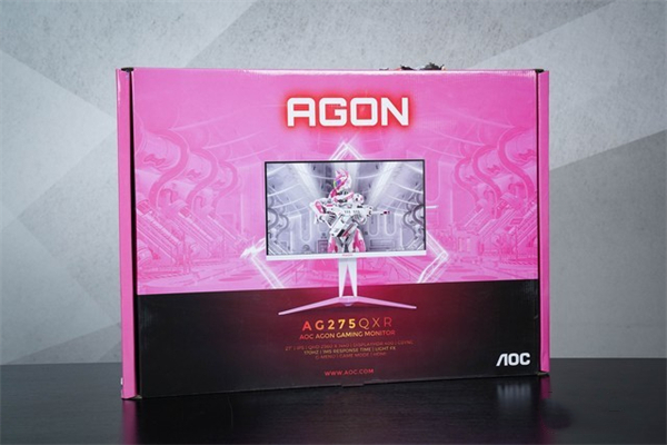 AGON AG275QXR在包装箱设计上就十分用心,粉色的外观准确的展现出了对女玩家精准的产品定位。