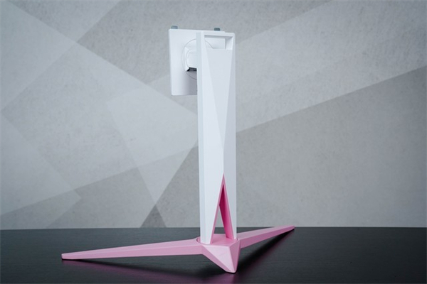 AGON AG275QXR底座采用三个铝合金支撑脚,更稳固的结构设计,避免了我们在调节显示器角度时发生摇晃倾倒情况。纯粉色的外观,显得更加清新可爱。底座采用免工具拆装,将底座与支架对准并拧紧螺丝就完成了组装。