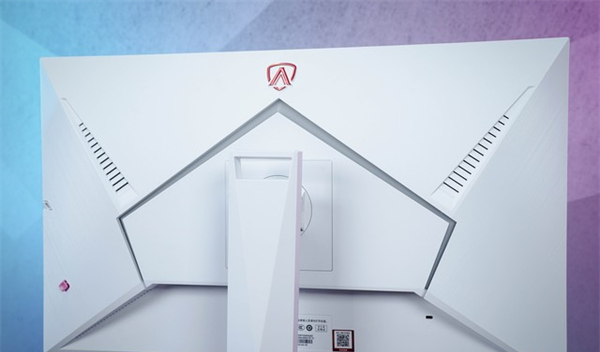 显示器背部棱角分明的外观,搭配电竞红镀铬的盾牌LOGO,体现出浓厚的电竞风格。两侧采用与底边相似的拉丝纹理,兼具了高颜值和出色的防滑性。