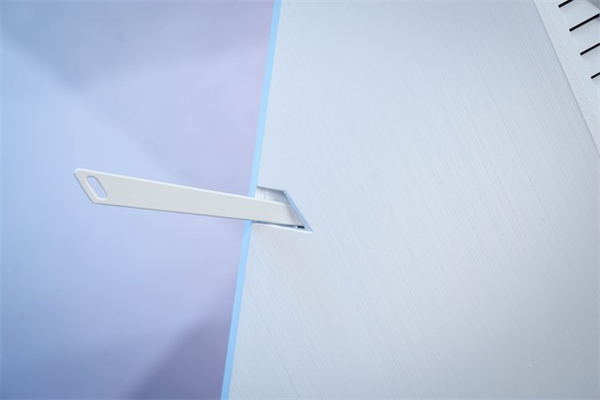 在显示器背部的左侧,配备了可伸缩的耳机挂钩,铝合金材质使它拥有优秀的承托能力和耐用性。挂架同样采用白色涂装,优秀的细节设计值得点赞。