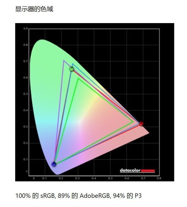 在色域覆盖度的测试上,我们实测AGON AG275QXR sRGB色域的覆盖度为100%,Adobe RGB色域覆盖度为89%,P3色域覆盖度为94%。