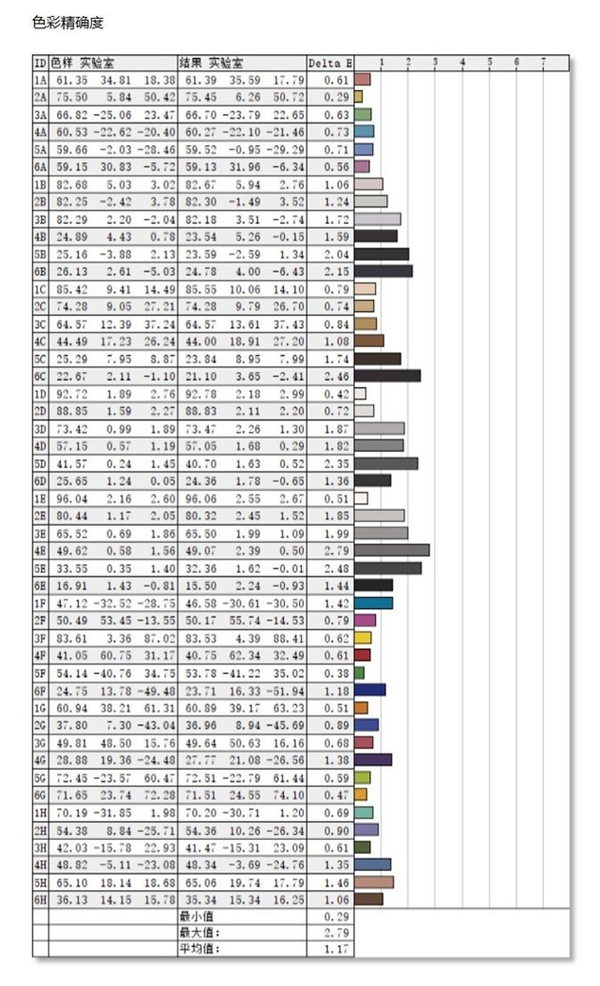 色彩精确度方面,AGON AG275QXR测试的48种颜色平均△E值仅为1.17.当0<△E<2时,人眼基本上分辨不出色彩的差异,由此可见,这款显示器的色彩还原能力非常不错。