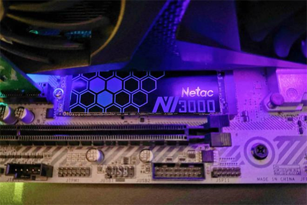虽然朗科绝影NV3000 不带RGB灯效,但是装机后颜值还是很不错的,在主机其他RGB灯效硬件的衬托下,这款SSD硬盘也是很靓的,一眼就可以看到这款硬盘。