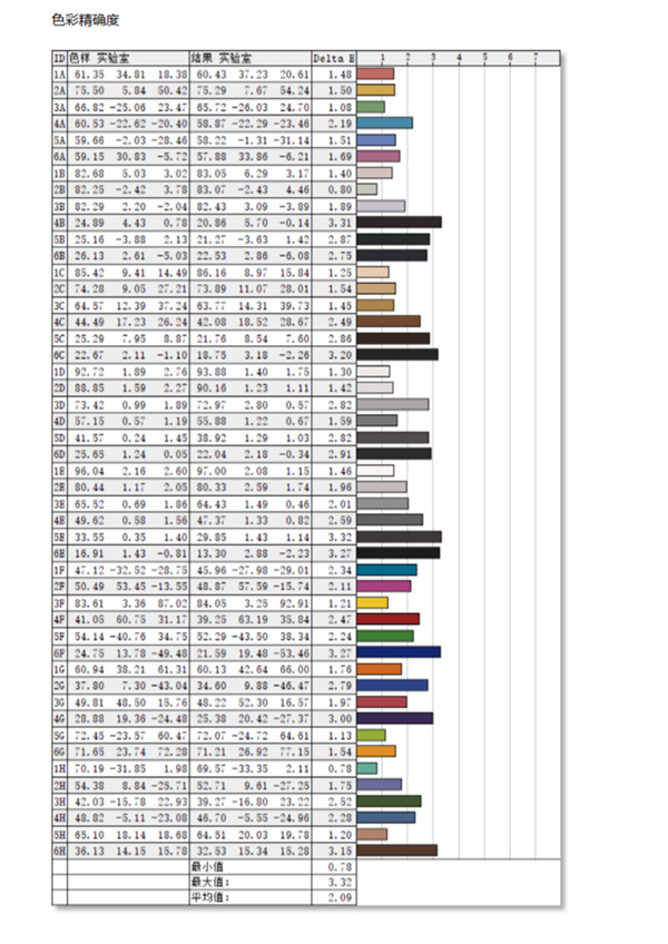 在色彩精确度测试上,飞利浦279M1显示器的48种颜色平均ΔE为2.09,当ΔE<2时,人眼是基本分辨不出色彩差异的,因此,飞利浦279M1显示器在色彩还原上也有着不错的表现,在游戏场景下是完全没有问题的。