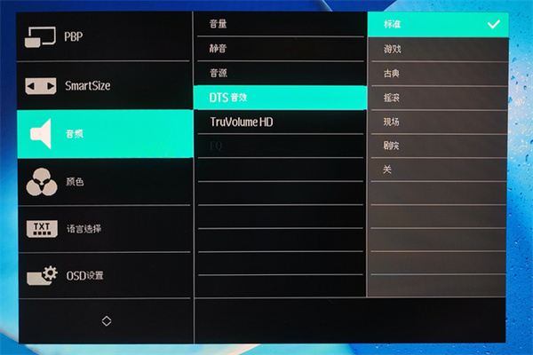 音效方面,飞利浦279M1显示器支持DTS音效,并且可以选择不同的音效模式,从而满足不同场景下用户的使用需求。