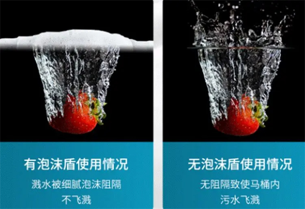 这个马桶还有一个最实用的功能,那就是自带泡沫盾,有了这个功能再也不怕拉粑粑水溅到屁屁了,真的超级棒!
