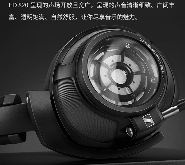 在发声单元上,森海塞尔HD820采用了56mm的超大动圈单元,声音的表现非常饱满。高音清澈通透,低频的表现力量十足,层次丰富。