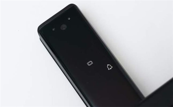 外侧面板上方是猫眼视频的摄像头,下方三枚是3D人脸算法感应元件,方形的是显示屏,而再下方圆形区域是半导体指纹采集头。