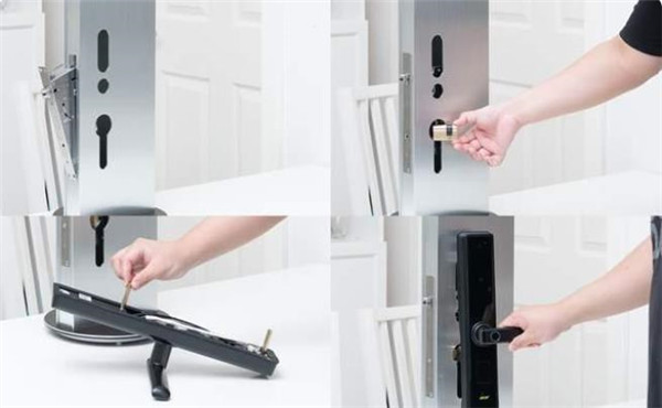 那要是万一没电了呢,除了在底部插充电宝供电临时开锁外,还可以选择机械钥匙,打开机械钥匙的锁孔,然后就是传统门锁的开门方式了。