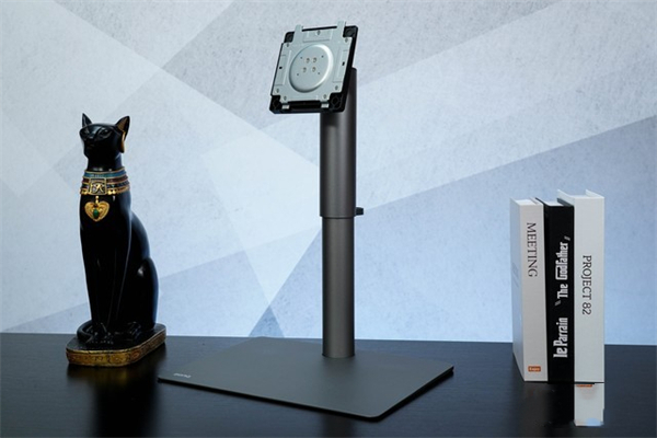 下面我们将显示部分取下,来看一下底座和支架部分。明基 PD3420Q的金属支架,色彩均匀且颜值较高,同时把所有的铰链结构等都隐藏起来,只保留了一个极简的圆柱。此外,支架与显示部分采用卡扣式连接,拆装过程简易便捷。