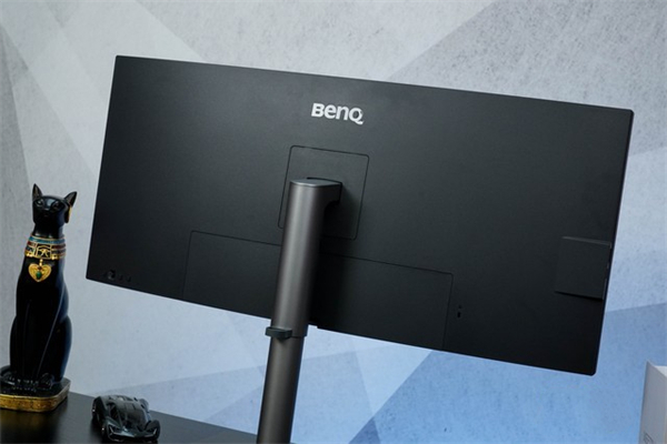 在外观设计方面,整机背部仅设置有一枚品牌标志,并且采用了纯黑色镜面工艺。优秀的细节使得明基 PD3420Q的沉稳气质,没有被任何额外的设计元素所破坏。