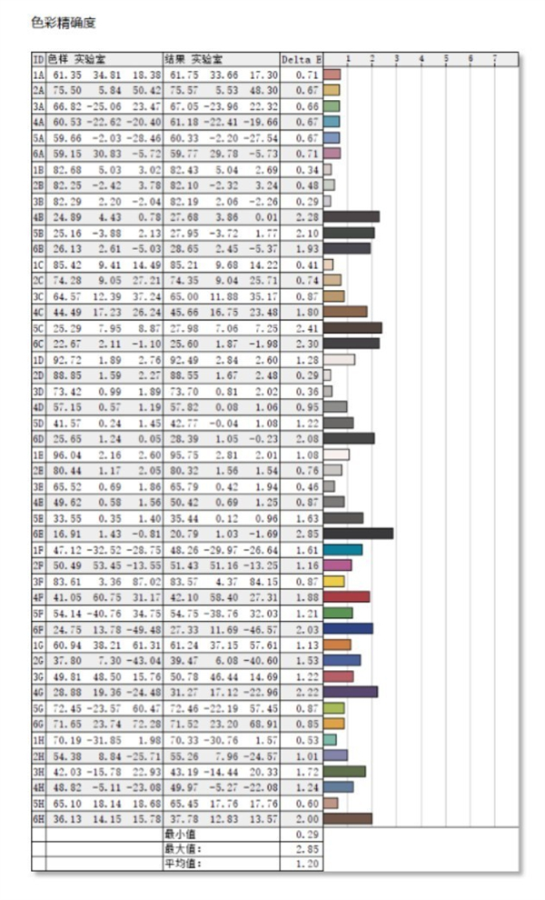 色彩精确度方面,明基 PD3420Q测试的48种颜色平均△E值为1.2.当0<△E<2时,人眼基本上分辨不出色彩的差异,由此可见,明基 PD3420Q的色彩还原能力很不错。