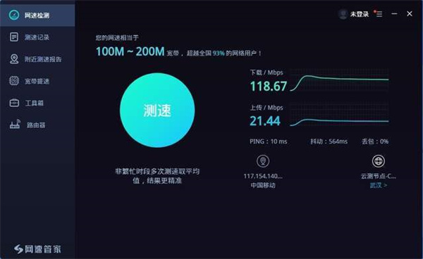 经过网速检测,京东云无线宝AX3000后羿所运行的无线网速下载速率平均为118.67Mbps,上传速率为21.44Mbps,轻轻松松跑满了100M家庭宽带。可见其传输速度确实很快。