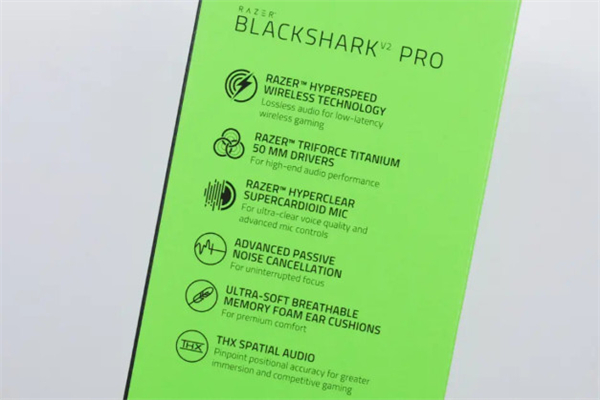 在主要技术支持方面,旋风黑鲨V2专业版支持RAZER HYPERSPEED低延迟无线技术、50mm镀钛单元、RAZER HYPERCLEAR灵晰降噪麦克风以及THX SPATIAL AUDIO音频技术,另外耳机还采用FLOWKNIT柔软耳棉。